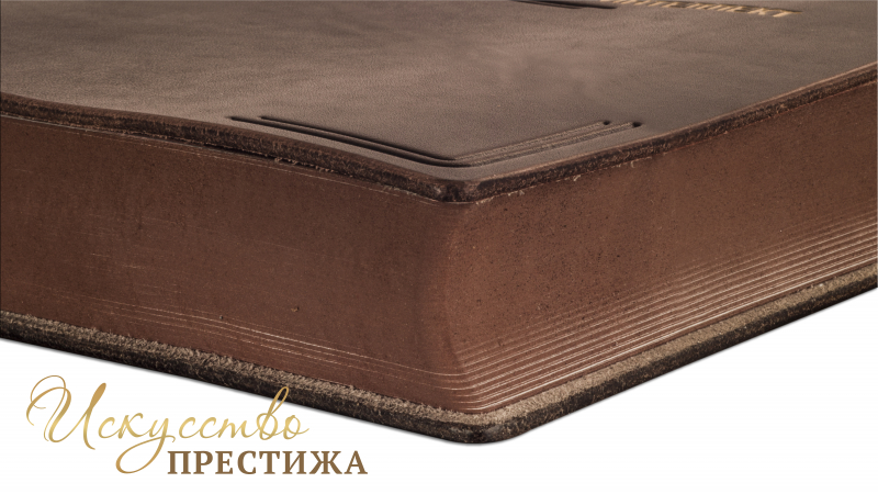 Цельнокожаный полужесткий переплет «Брадель», ручной работы, изготовлен из натуральной кожи POSITANO Vegetale производства итальянской кожевенной фабрики. Обложка книги оформлена комбинацией глубокого блинтового и рельефного золотого тиснения, с использованием фольги “Luxor 240”. Обрез блока вручную шлифован и окрашен.