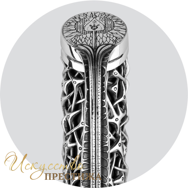 Верхняя часть ручки, роскошная и сложная, олицетворяет сам мозг, а корпус своей классической простотой символизирует тело человека.