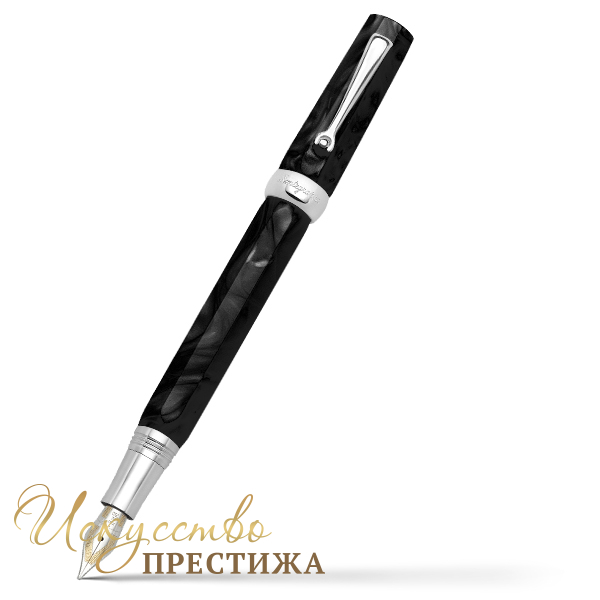 Изящная ручка изготовлена из драгоценной перламутровой смолы классического черного цвета. Лаконичные детали, выполненные из серебра, подчеркивают безупречные грани роскошного корпуса. Кольцо колпачка украшено выгравированным логотипом бренда. Письменный инструмент оснащен удобным зажимом с вращающейся сферой.