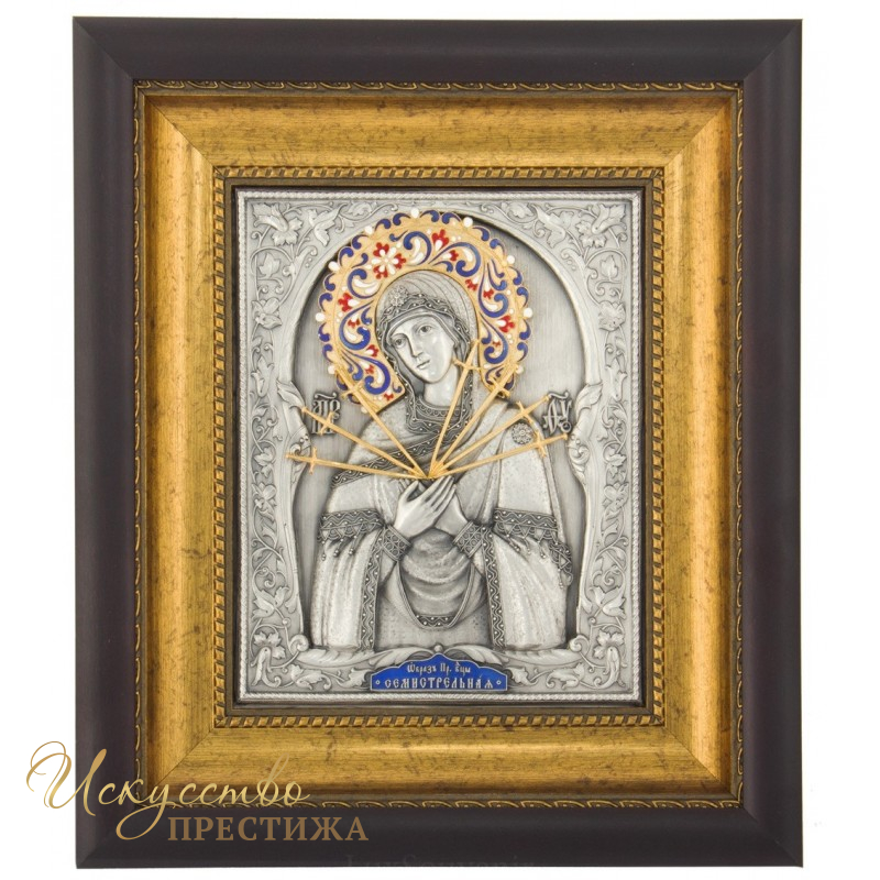 Перед иконой Семистрельная Пресвятая Богородица молятся, чтобы улучшить неблагополучные отношения в семье, с близкими, с родственниками, с супругами, с родителями и детьми. День чествования иконы «Семистрельная» - 13/26 августа. Эта икона окажется эксклюзивным подарком на любое мероприятие.