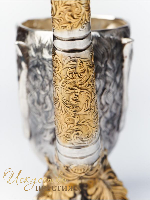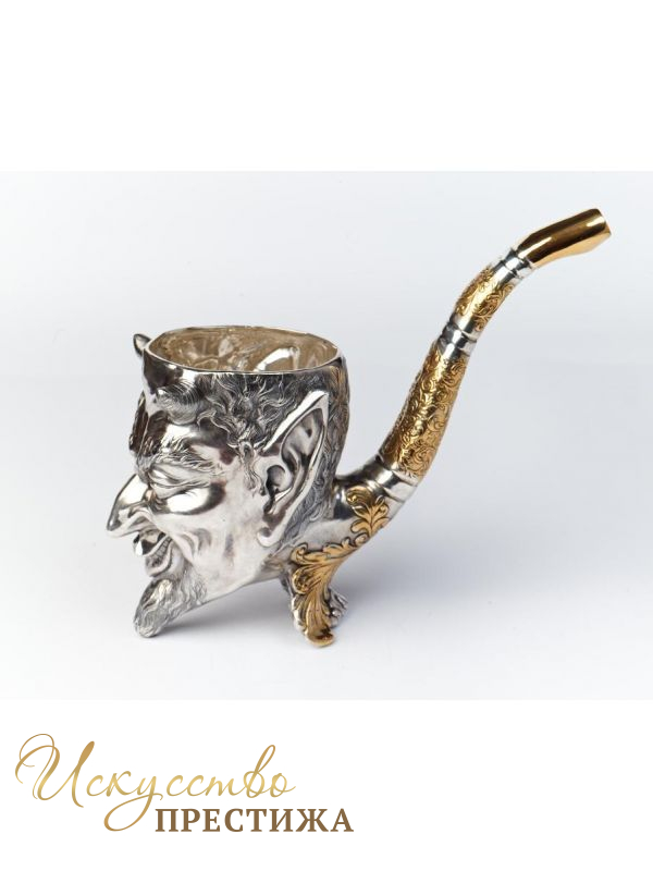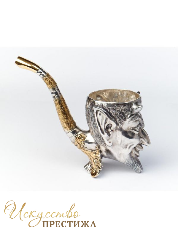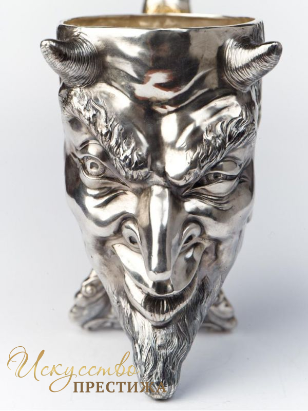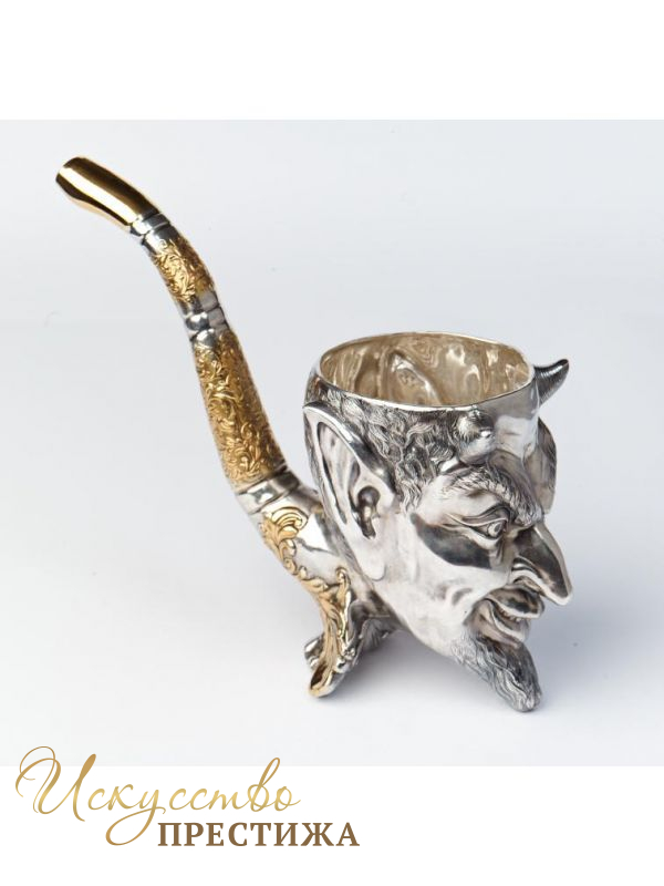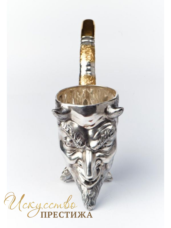 Серебряная чаша с позолотой в виде оригинального чертика.
