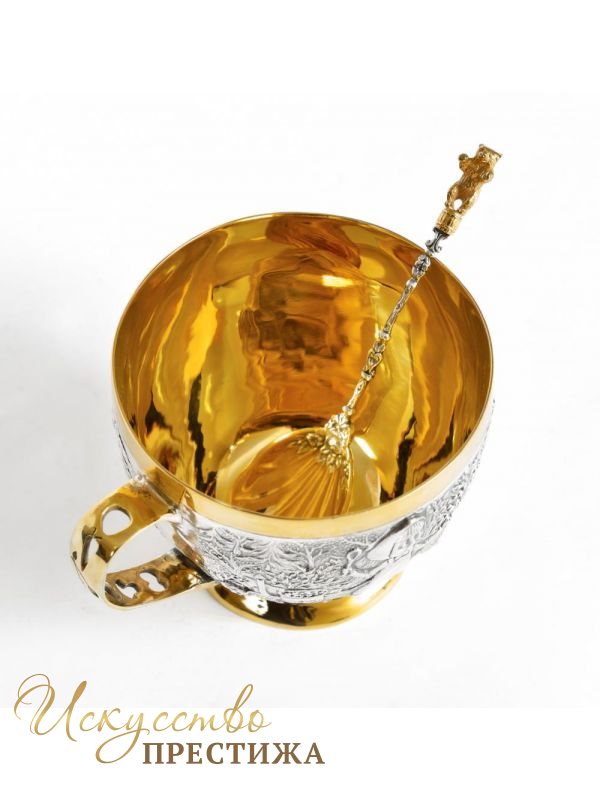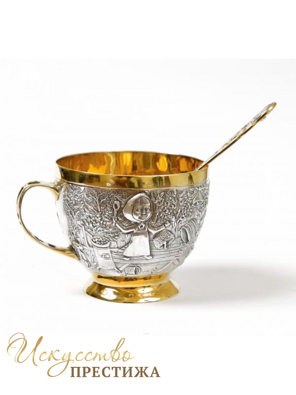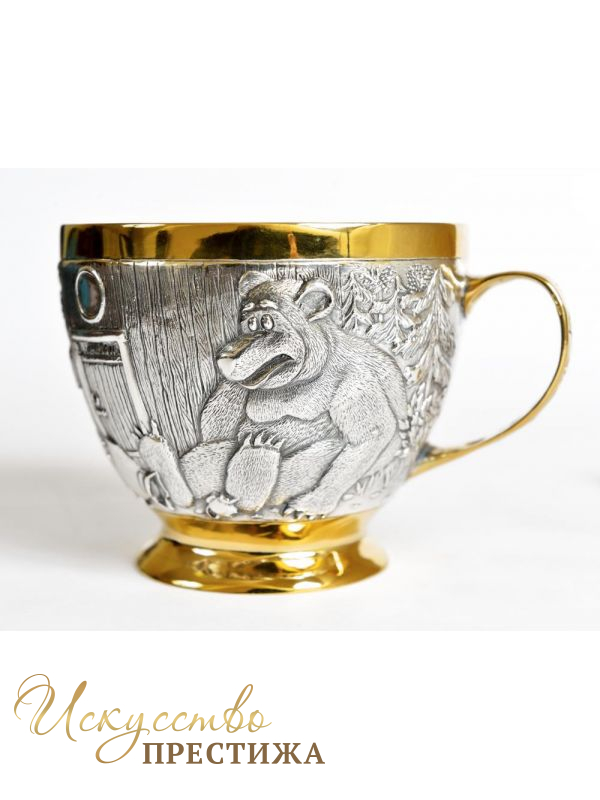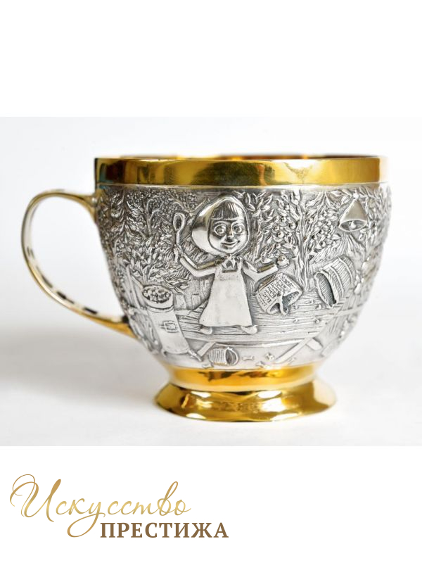 Оригинальная чашка для чая/кофе/какао с фресками из известных мультяшных героев из серебра с позолотой.