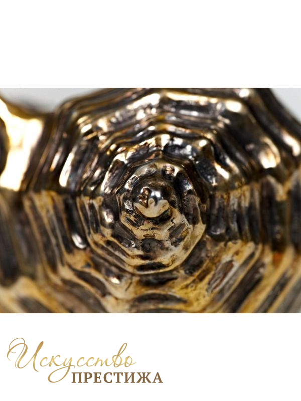 Роскошная икорница, сделанная из серебра и украшенная позолотой.