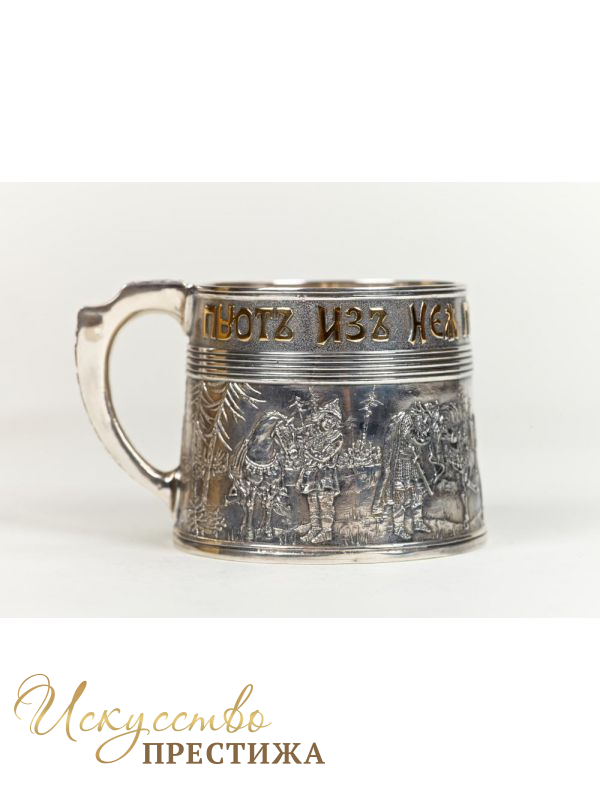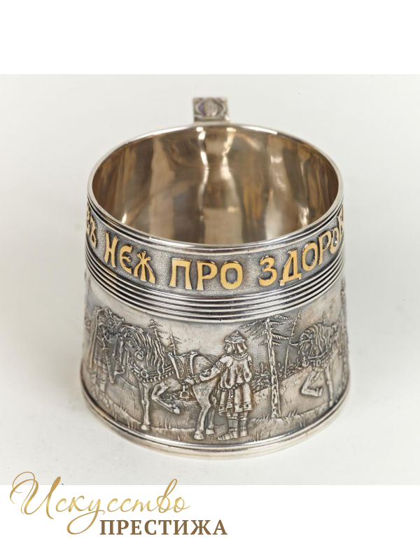 Оригинальная серебряная кружка с позолотой "Богатыри".