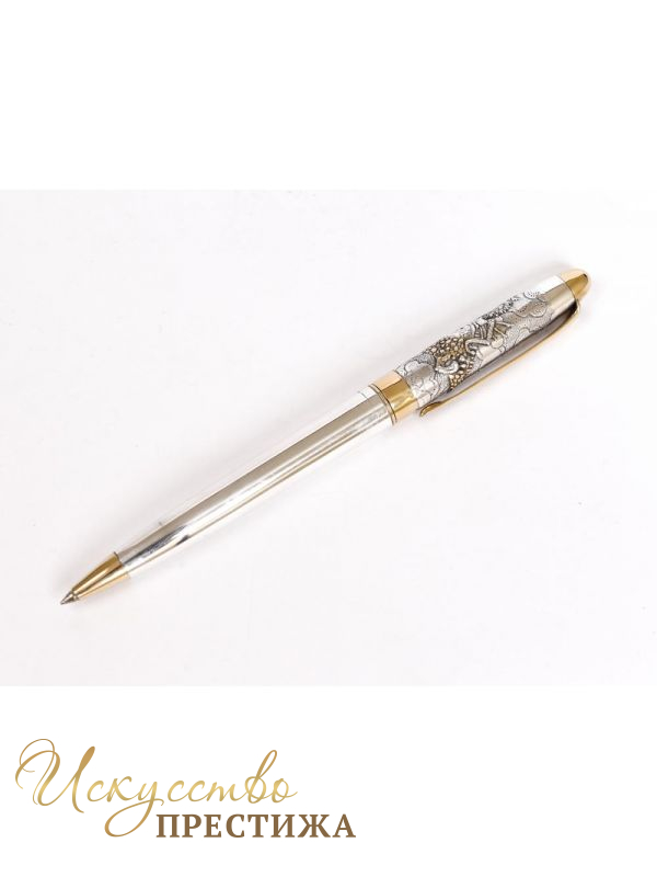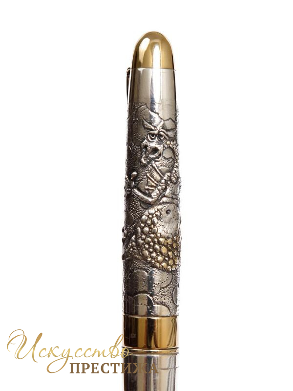 Автоматическая ручка с поворотным механизмом из серебра и барельефным изображением дракона. Длина ручки 13,5 см.