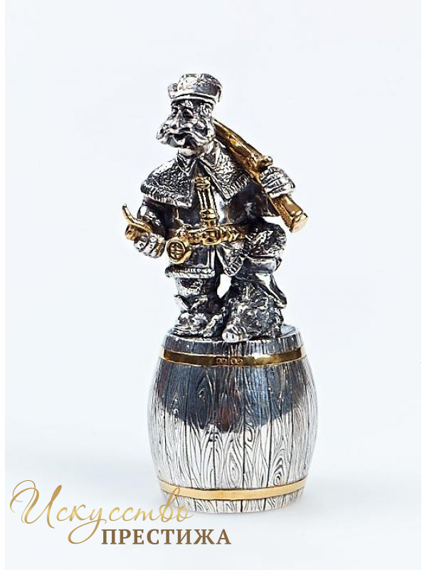 Описание товара Серебреная Рюмка Охотник на бочке