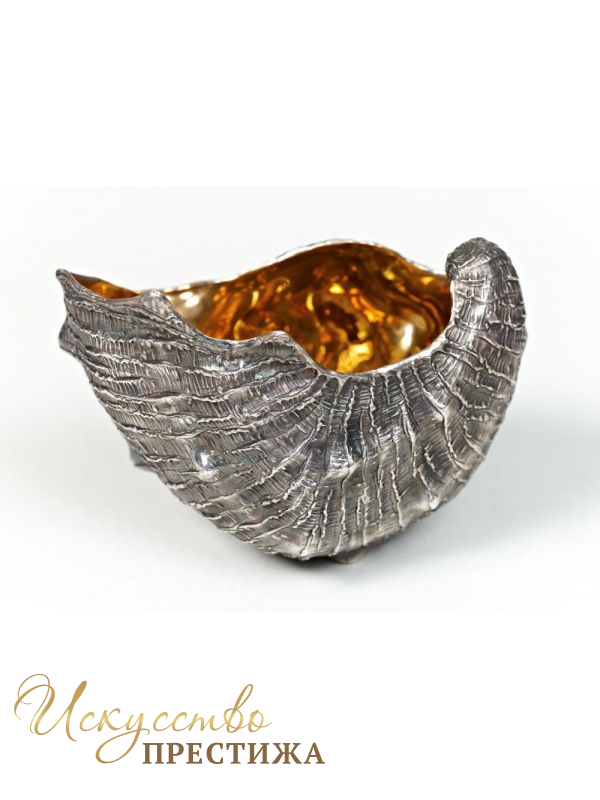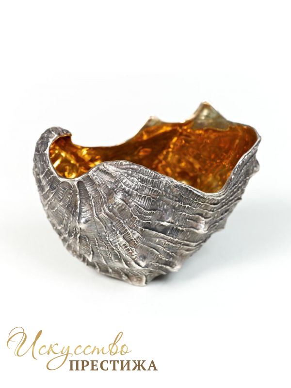 Роскошная салатница, сделанная из серебра и украшенная позолотой.