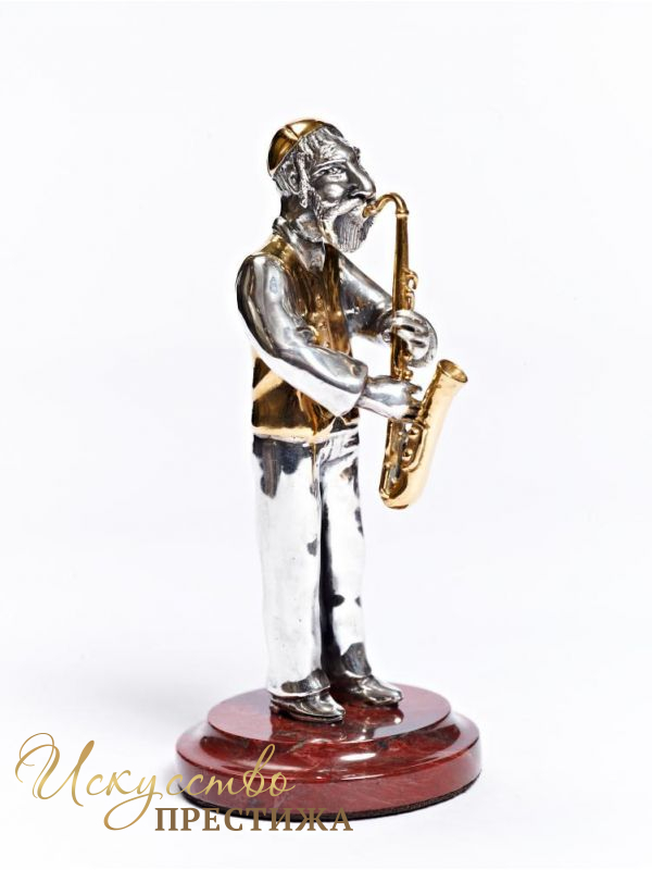 Описание товара Серебреная Статуэтка Еврей с саксофоном