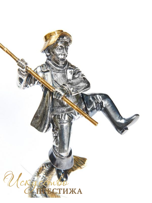 Описание товара Серебреная Статуэтка Рыбак на рыбе