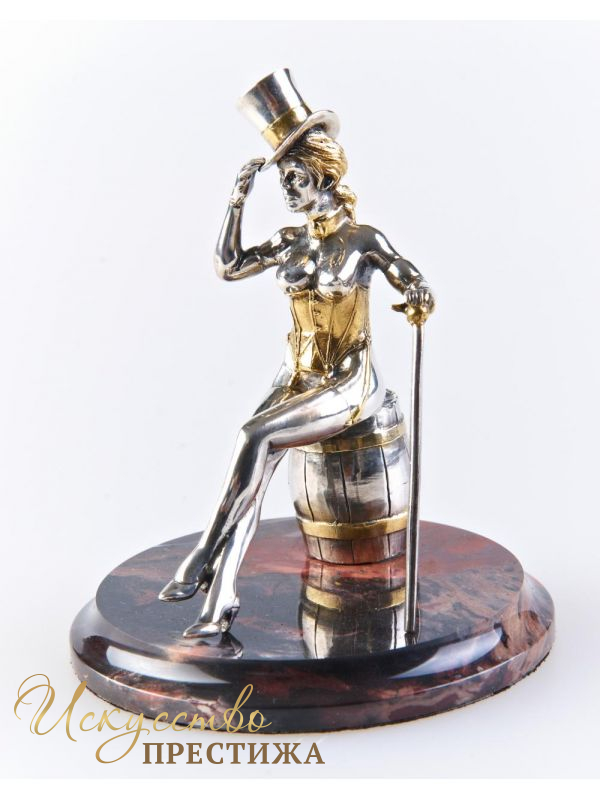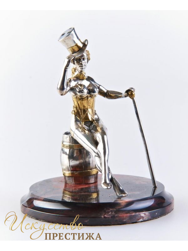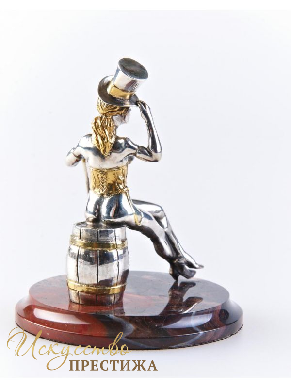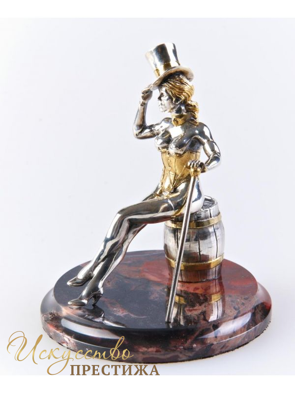 Замечательный подарок другу, серебряная статуэтка с позолотой "Танцовщица кабаре", на подставке из натурального камня.