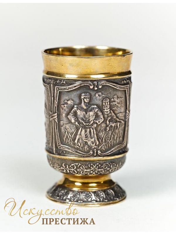 Стильная и красивая рюмка из серебра с позолотой.