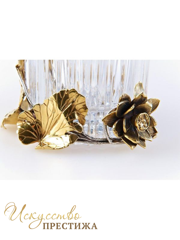 Хрустальная ваза с оригинальным серебряным орнаментом с позолотой.