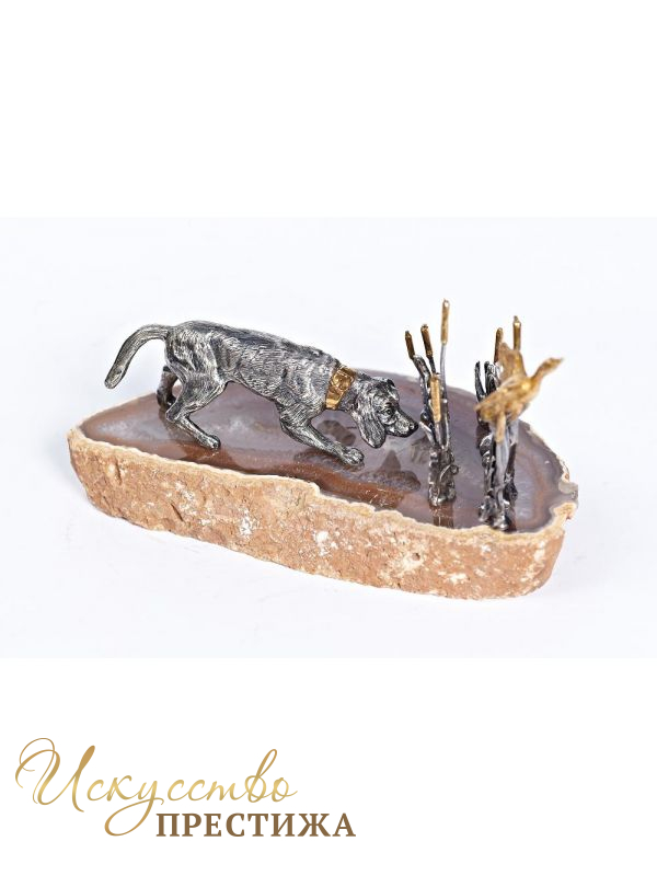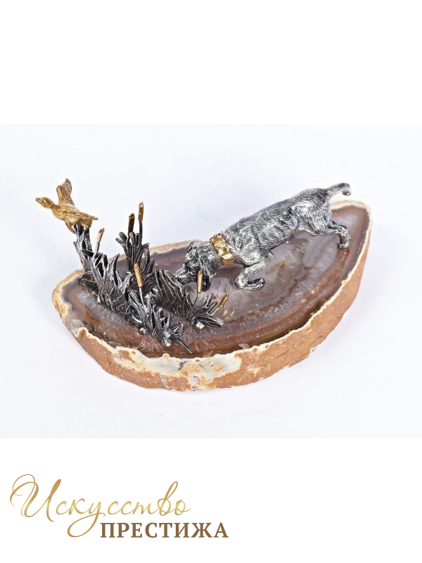 Описание товара Серебреная Визитница Собака в камышах