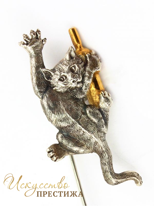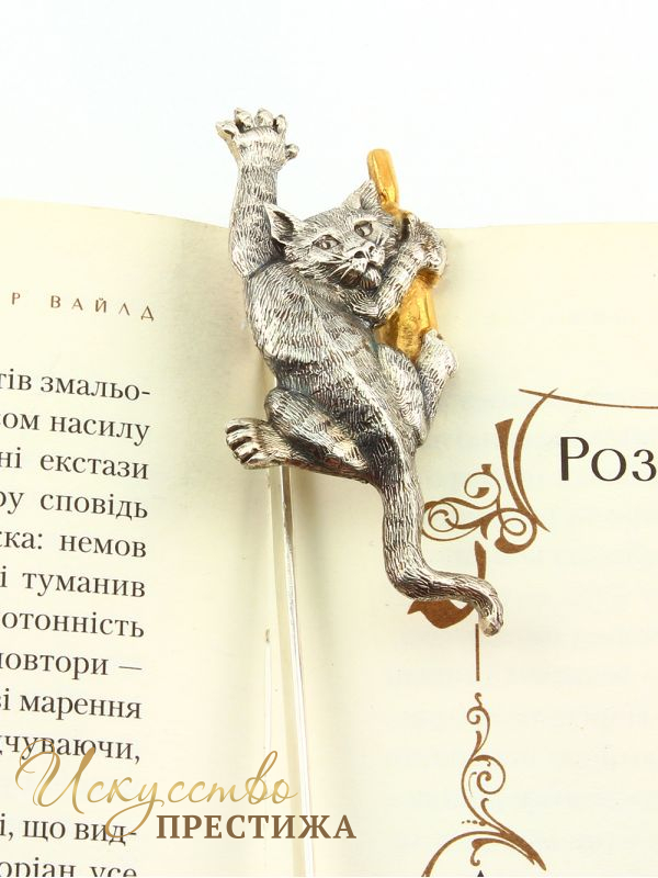Описание товара Серебреная Закладка Кот с бутылкой