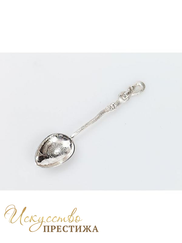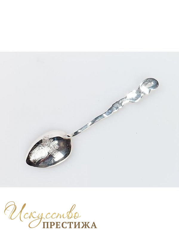 Серебряная чайная ложка с узором.