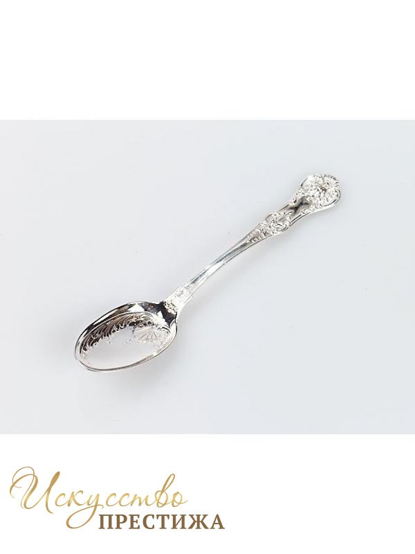 Серебряная чайная ложка с узором.