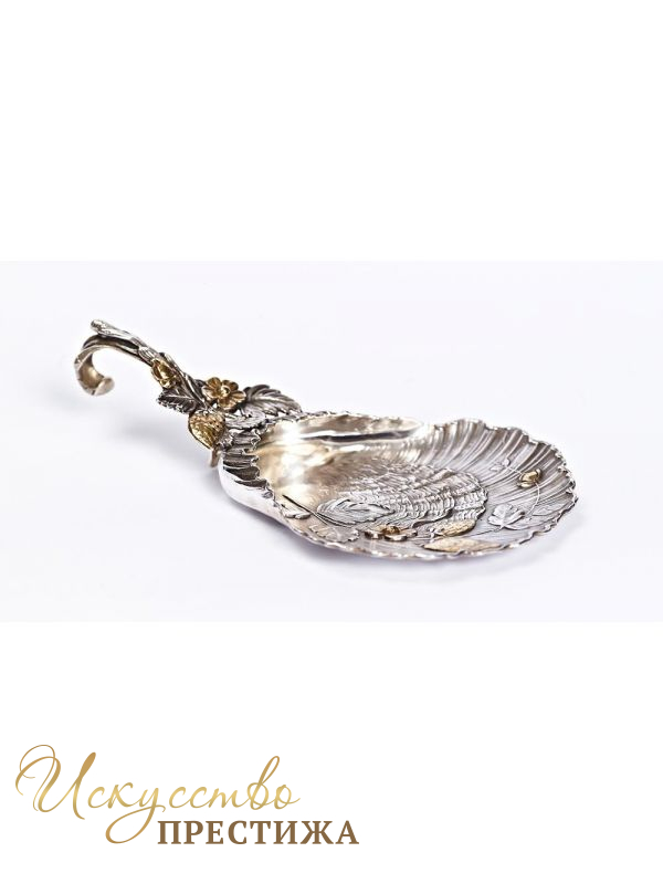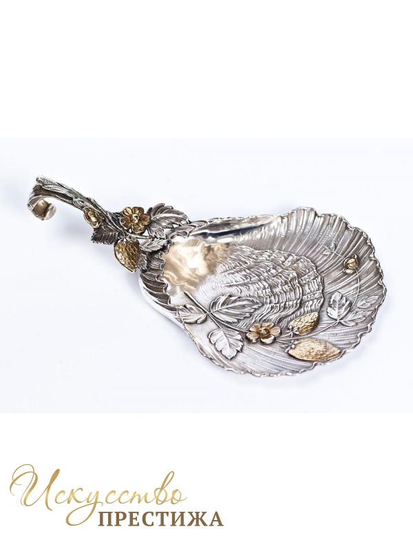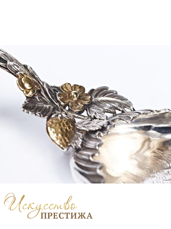 Великолепная серебряная лопатка для варенья "Клубничка" с позолотой.