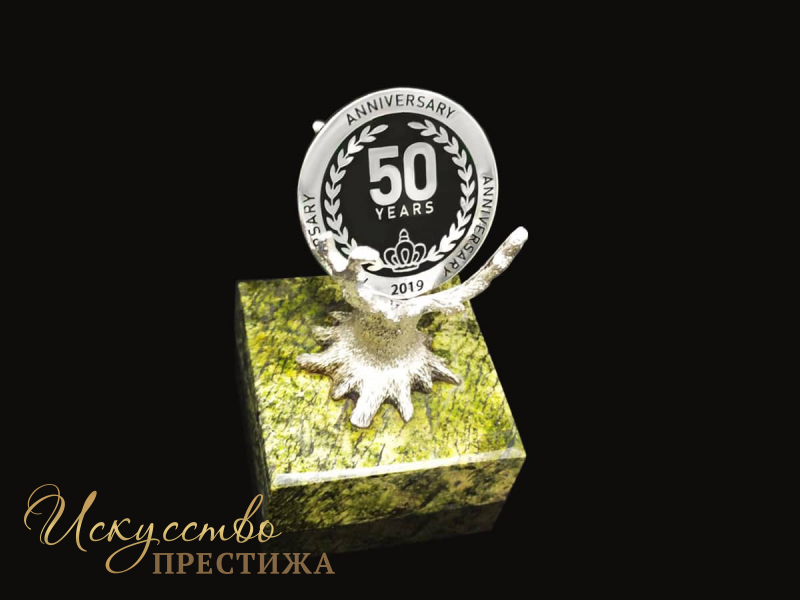 Описание товара Серебряная монета 50 лет, на подставке "Дерево"