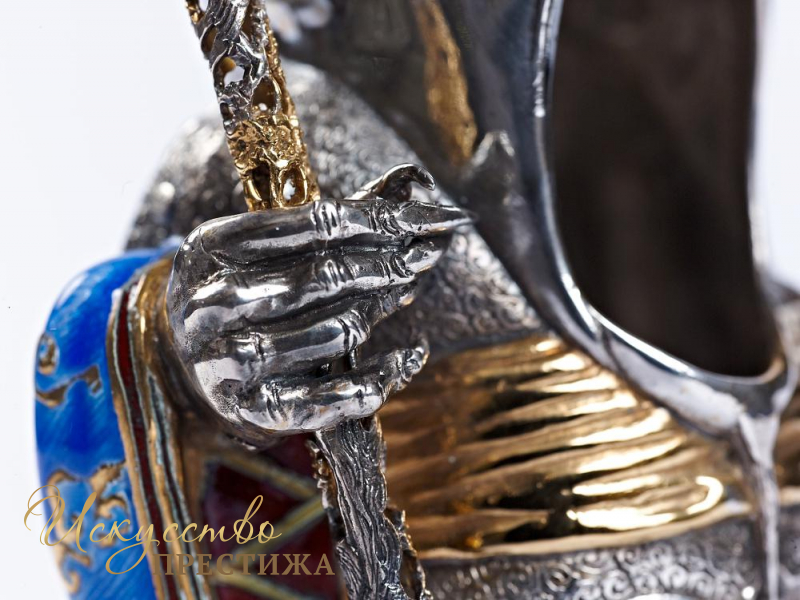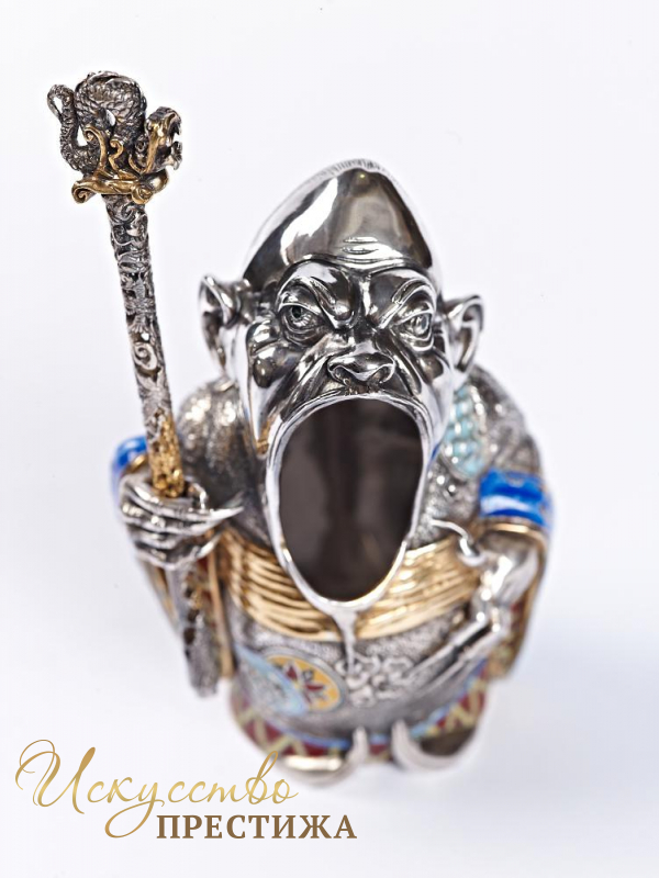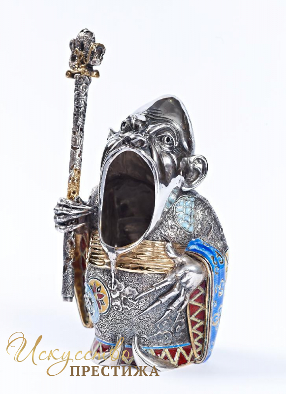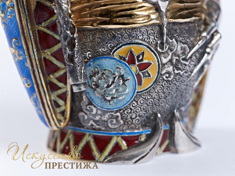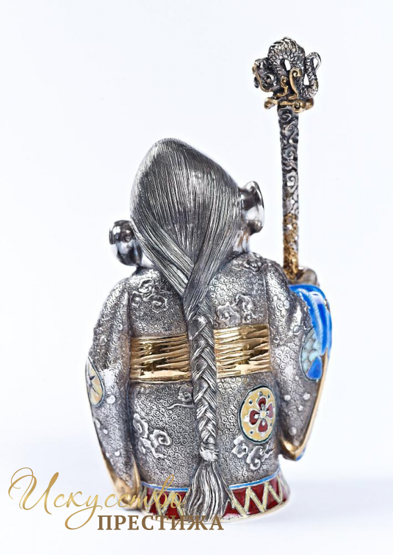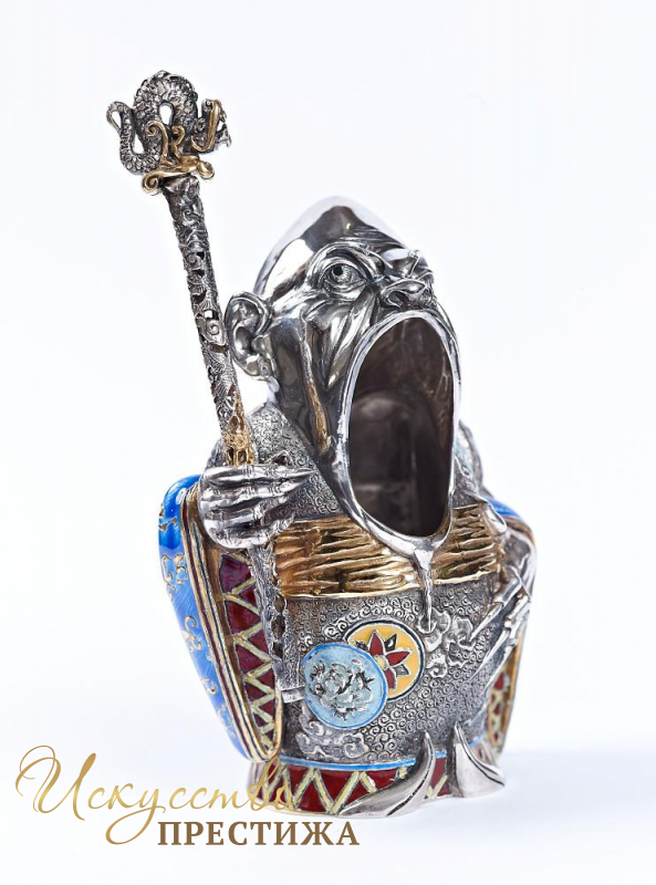 Великолепная серебряная пепельница со вставками эмали и позолоты, изображающая Мандарина, китайского, корейского или вьетнамского чиновника.