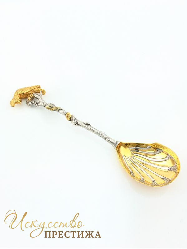 Описание товара Серебряная салатная ложка Попугай