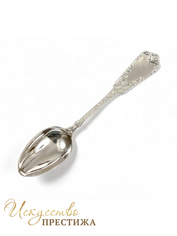 Столовая серебряная ложка с цветочным рисунком. Длина 18 см.