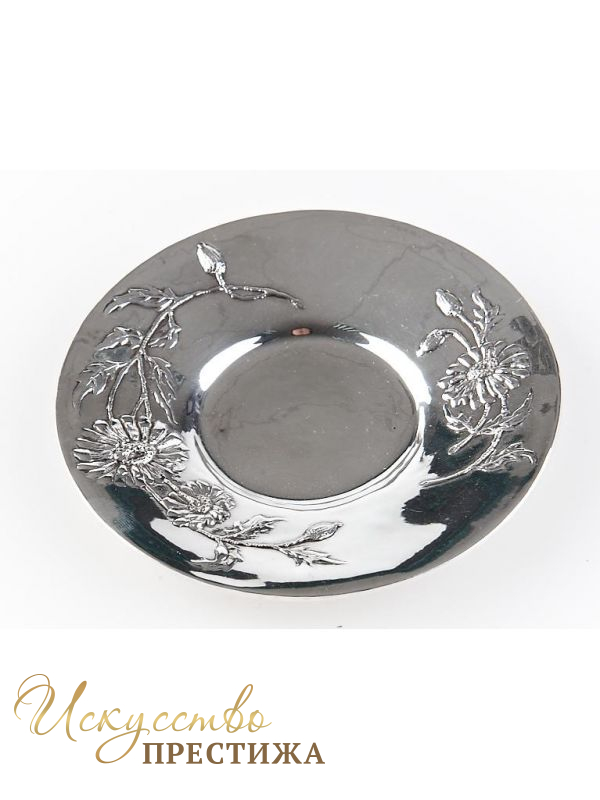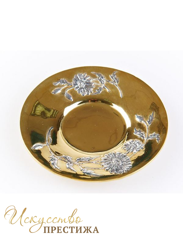 Серебряное блюдце с позолотой "Ромашки".
