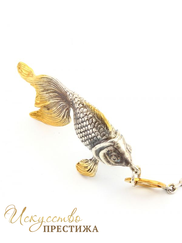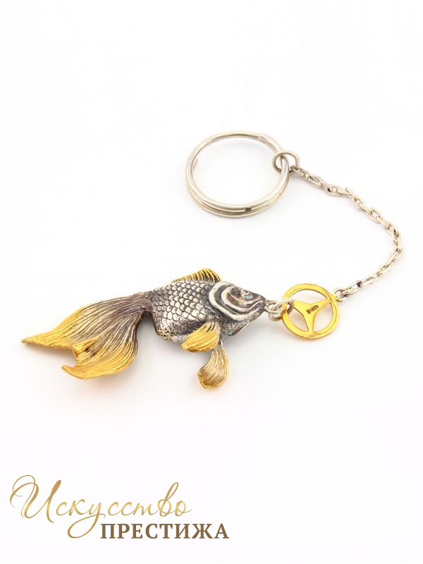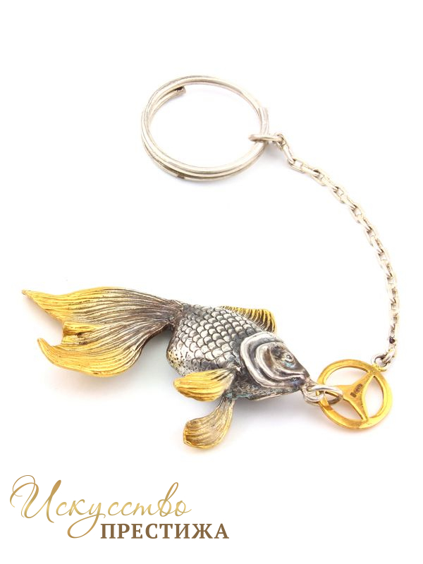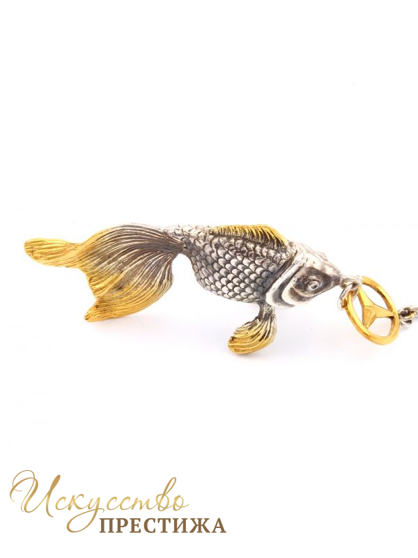 Описание товара Серебряный брелок Золотая рыбка Мерседес