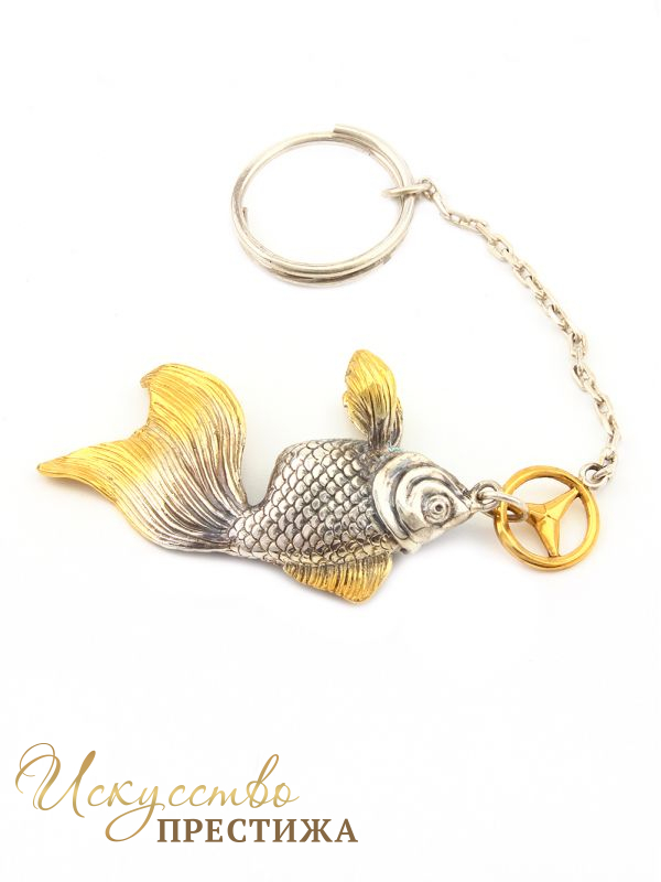 Элегантный серебряный брелок Золотая рыбка с логотипом Мерседес.