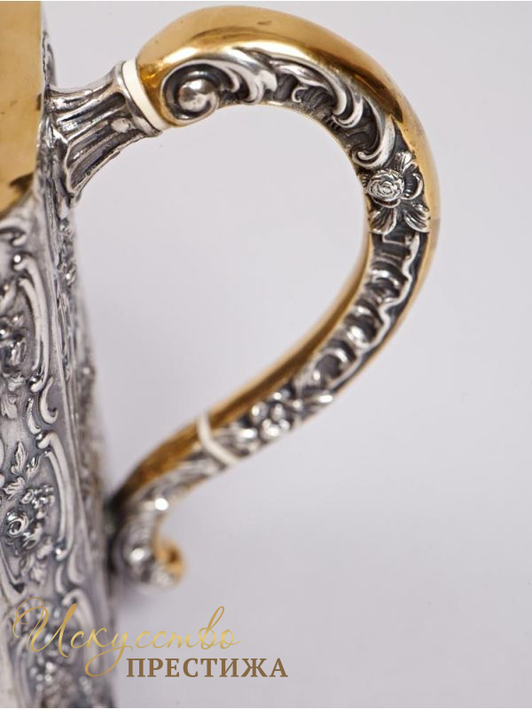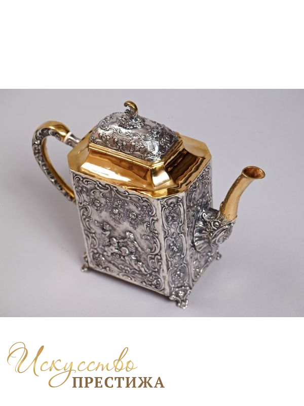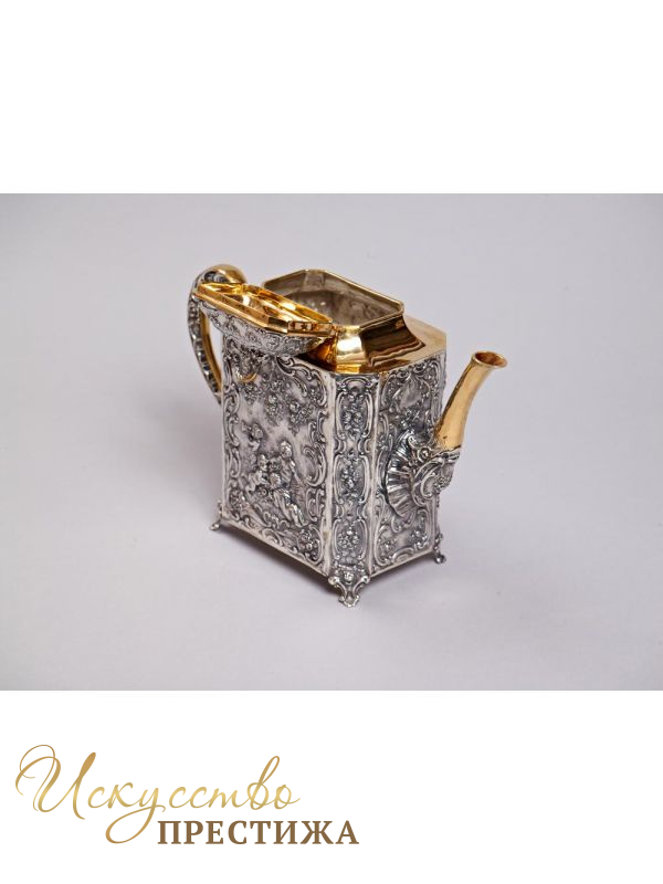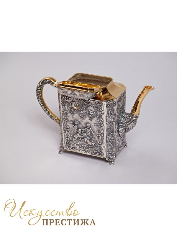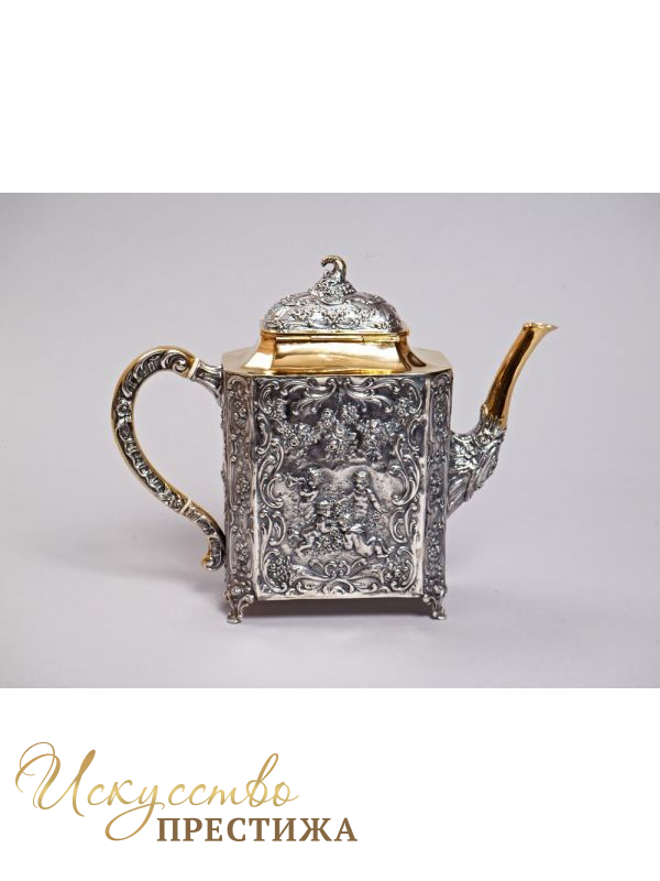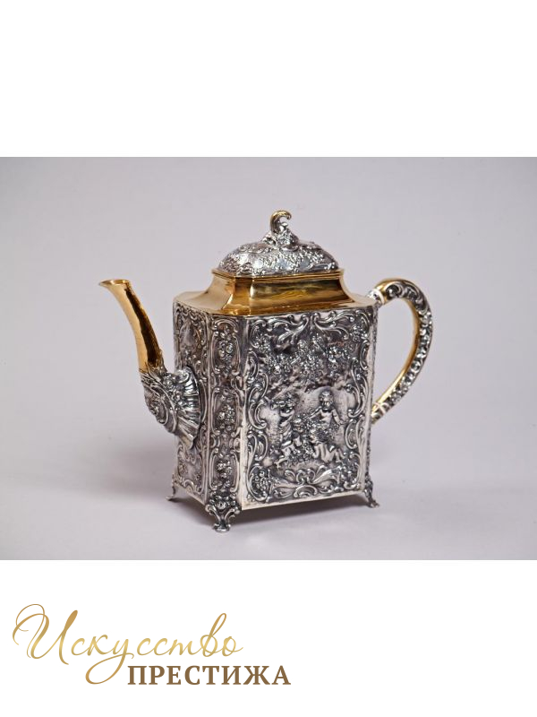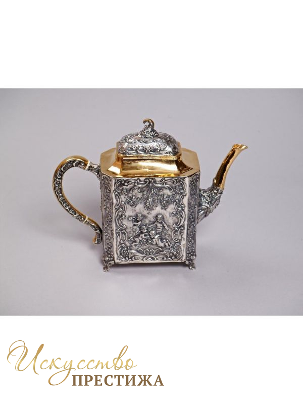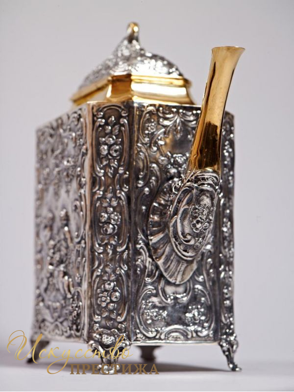 Красивый чайник из серебра с позолотой - роскошный подарок на новоселье!