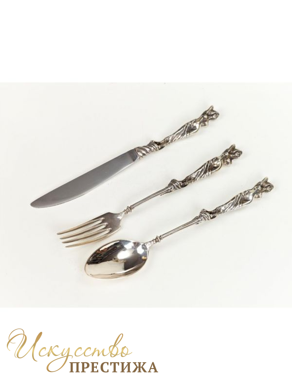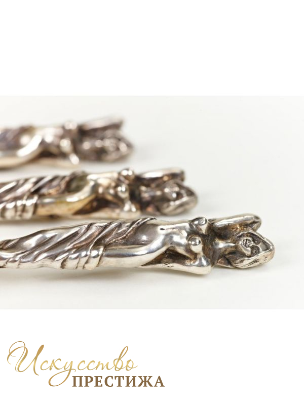 Шикарный набор серебряных столовых приборов из серебра с красивыми девшками.