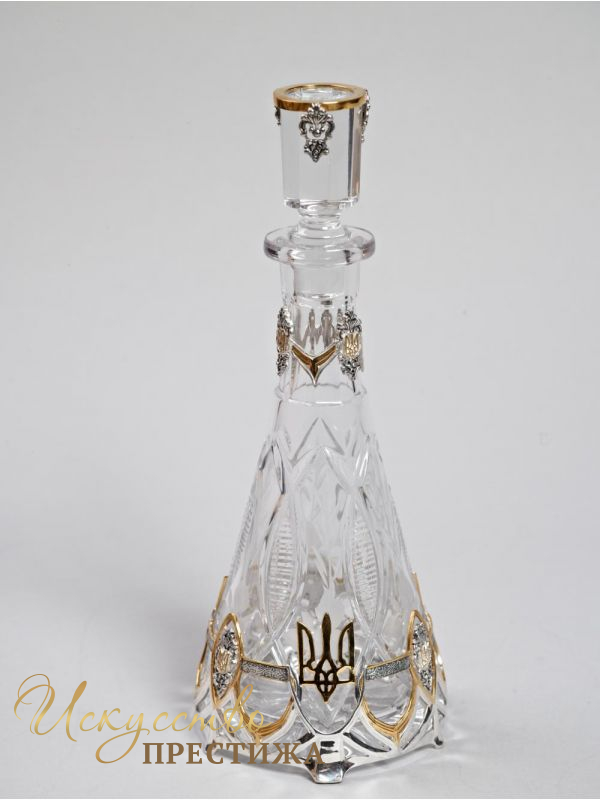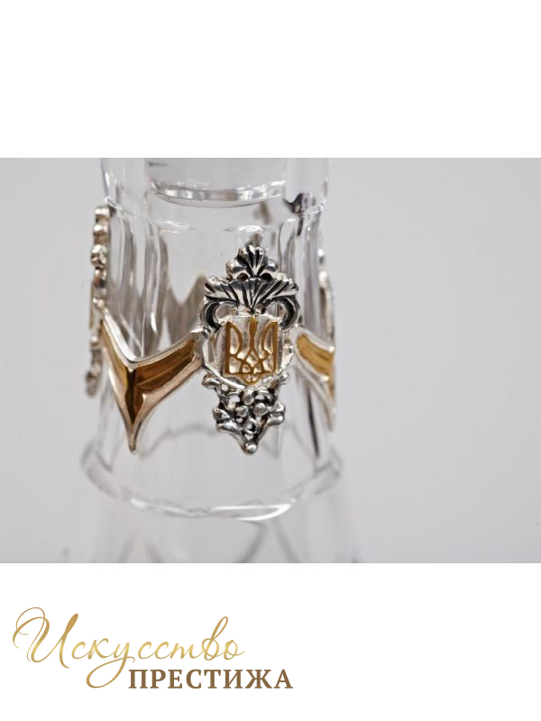Красивый и оригинальный серебряный графин с позолотой, с украинской символикой.