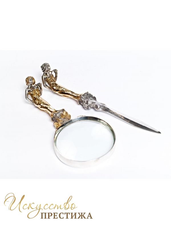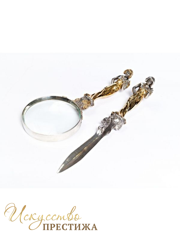 Серебряный Нож для бумаги и лупа Дева.