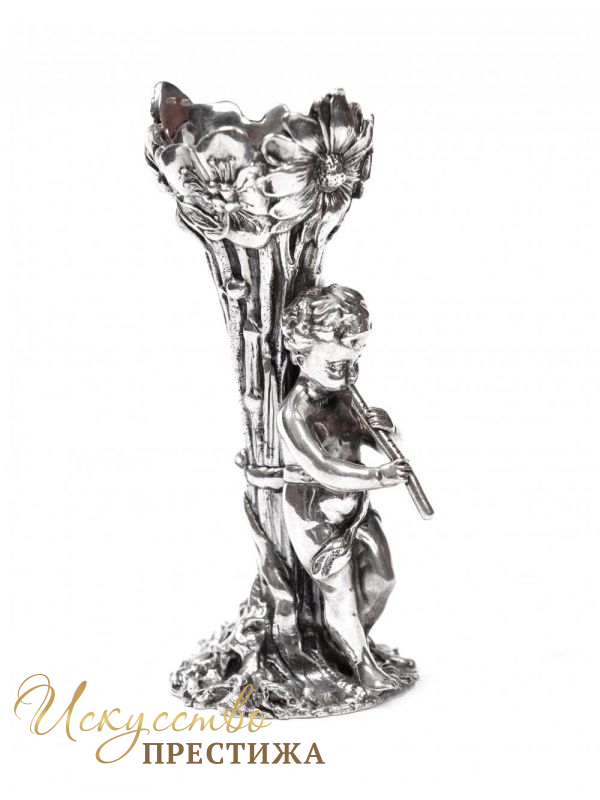 Серебряный подсвечник с прекрасным маленьким эльфом, играющим на флейте.