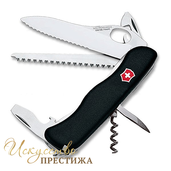 Если вам приходится работать с верёвками, всевозможными тросами, канатами и другими плотными ткаными материалами, то складной нож Victorinox "Forester" 0.8363.MW3 с этой задачей справится без труда, благодаря специальному серрейторному лезвию, которое делает срез под разными углами. В качестве бонуса, швейцарский нож оснащён специальным механизмом типа Liner-lock, который обеспечивает надёжную фиксацию лезвия в открытом положение, предотвращая его самопроизвольное складывание. Его название «однорукий», предусматривает открывание клинка одной рукой. Модель имеет конструкцию, состоящую из большого лезвия с фиксацией, шила, открывалки для бутылок, консервного ножа, малой и большой плоской отвёртки с лайнерным фиксатором, инструмента для снятия изоляции, пинцета, зубочистки и кольца для подвеса. Вам не составит ни какого труда вытащить пробку из бутылки, так как эта модель оснащена штопором. Нож изготовлен из высококлассных материалов, таких как высококачественная нержавеющая сталь и пластик. Благодаря удобной форме с выемками для пальцев на пластиковой рукоятке, ваша рука не будет скользить. На всю продукцию компания даёт пожизненную гарантию качества использованных материалов.