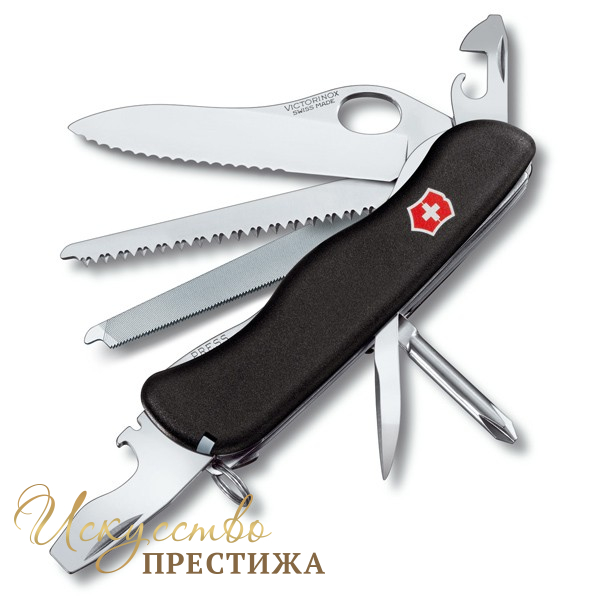 Если вам приходится работать с верёвками, всевозможными тросами, канатами и другими плотными ткаными материалами, то складной нож Victorinox "LOCKSMITH" 0.8493.MW3 с этой задачей справится без труда, благодаря специальному серрейторному лезвию, которое делает срез под разными углами. В качестве бонуса, швейцарский нож оснащён специальным механизмом типа Liner-lock, который обеспечивает надёжную фиксацию лезвия в открытом положении, предотвращая его самопроизвольное складывание. Модель имеет конструкцию, состоящую из большого лезвия с фиксацией, шила, открывалки для бутылок, консервного ножа, плоской большой и малой отвёртки, инструмента для снятия изоляции, пинцета, зубочистки и кольца для подвеса. В набор инструментов дополнительно входит небольшая, но очень острая пила по дереву, мощная крестовая отвертка, ножовка и напильник по металлу . Нож изготовлен из высококлассных материалов, таких как высококачественная нержавеющая сталь и пластик. Благодаря удобной форме с выемками для пальцев на пластиковой рукоятке, ваша рука не будет скользить. На всю продукцию компания даёт пожизненную гарантию качества использованных материалов.