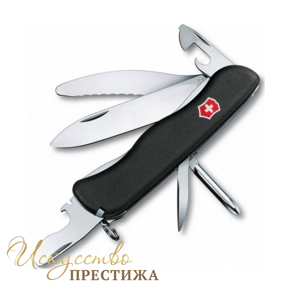 Если вам приходится работать с верёвками, всевозможными тросами, канатами и другими плотными ткаными материалами, то складной нож Victorinox "Parachutist" 0.8473.3 с этой задачей справится без труда, благодаря специальному серрейторному лезвию, которое делает срез под разными углами. В качестве бонуса, швейцарский нож оснащён специальным механизмом типа Liner-lock, который обеспечивает надёжную фиксацию лезвия в открытом положении, предотвращая его самопроизвольное складывание. Модель имеет конструкцию, состоящую из большого лезвия с фиксацией, шила, открывалки для бутылок, консервного ножа, плоской большой и малой отвёртки, инструмента для снятия изоляции, пинцета, зубочистки и кольца для подвеса. В набор инструментов дополнительно входит мощная крестовая отвертка. Нож изготовлен из высококлассных материалов, таких как высококачественная нержавеющая сталь и пластик. Благодаря удобной форме с выемками для пальцев на пластиковой рукоятке, ваша рука не будет скользить. На всю продукцию компания даёт пожизненную гарантию качества использованных материалов.