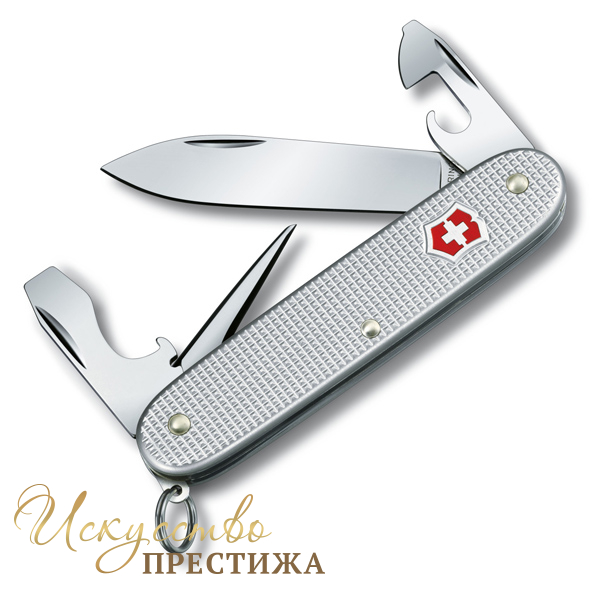 Складной армейский нож "Pioneer" 0.8201.26 швейцарского бренда Victorinox - это компактный, карманный и широко известный аксессуар, он будет великолепным подарком как для мужчин, так и для женщин, предпочитающих надёжность и долговечность. В основу производства положены современные технологии и оригинальные чертежи 1891 года. Нож изготовлен из высококлассных материалов, таких как высококачественная нержавеющая сталь и алюминий. Благодаря алюминиевому покрытию рукоятки, изделие будет максимально устойчиво к повреждениям и мелким потёртостям. Этот нож давно зарекомендовал себя как идеальный спутник в любой поездке или путешествии. Модель имеет конструкцию, состоящую из большого лезвия, открывалки для бутылок, плоской отвёртки, инструмента для снятия изоляции, консервного ножа с малой отвёрткой, шилом с развёрткой и кольцом для подвеса. Компания даёт пожизненную гарантию качества использованных материалов.