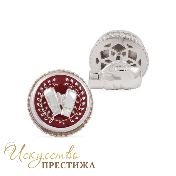 Роскошный аксессуар, изготовленный из серебра, венчает набор боксёрских перчаток и лавровый венец победителя. Лицевая часть запонки покрыта драгоценной эмалью тёмно-красного цвета, олицетворяя собой пояс знаменитого боксёра. Надежная застёжка выполнена в форме боксёрской перчатки.